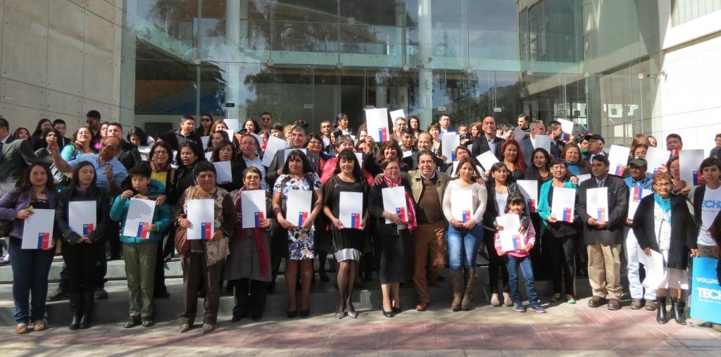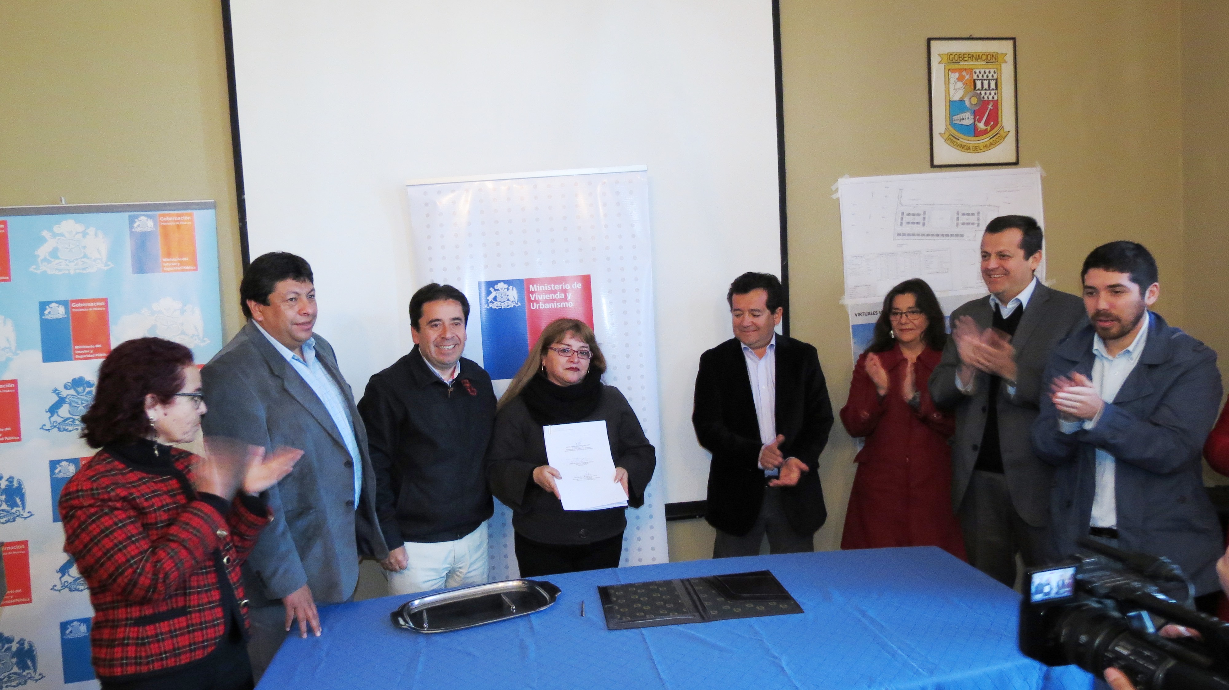 Emocionadas familias junto al Gobierno firman contrato de construcción del proyecto habitacional "Maricunga" en VallenarLos beneficiarios agradecieron a las autoridades regionales y a la Ministra de Vivienda y Urbanismo Paulina Saball. Asimismo, esperan que la Presidenta Bachelet los acompañe en el corte de cinta cuando finalicen las obras de las 76 viviendas cuya inversión supera los $2.300 millones |