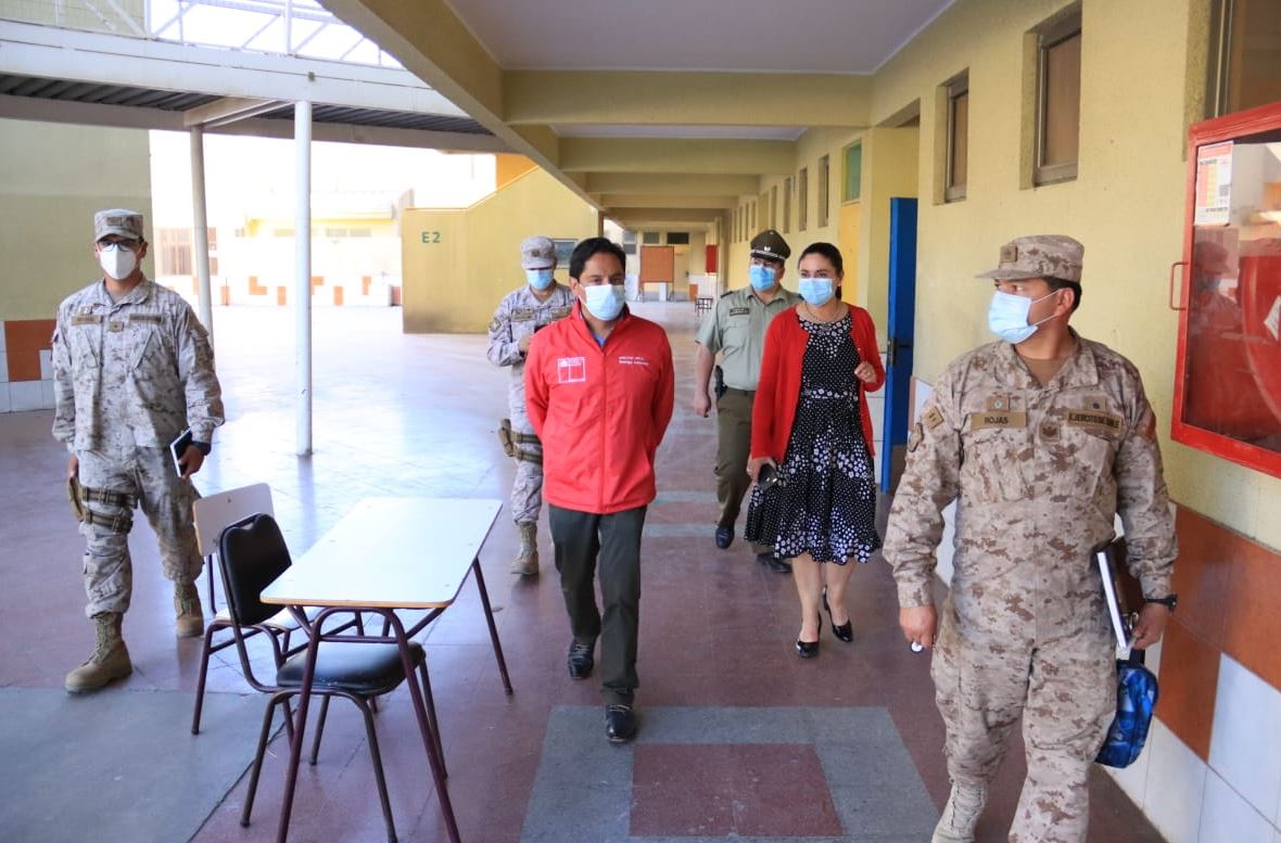 Autoridades verifican implementación de medidas de seguridad y acceso seguro a locales de votación en Copiapó Como parte de las acciones a implementar durante la jornada de Plebiscito este domingo 25 de octubre en la provincia de Copiapó, y a fin de entregar a la comunidad seguridad y recomendaciones sanitarias y de comportamiento en espacios exteriores en este proceso, se realizaron visitas inspectivas a diversos establecimientos educacionales, de los 17 designados, como locales de votación en la ciudad, enmarcado en las coordinaciones de seguridad pública atingentes a las competencias de la Gobernación Provincial. |