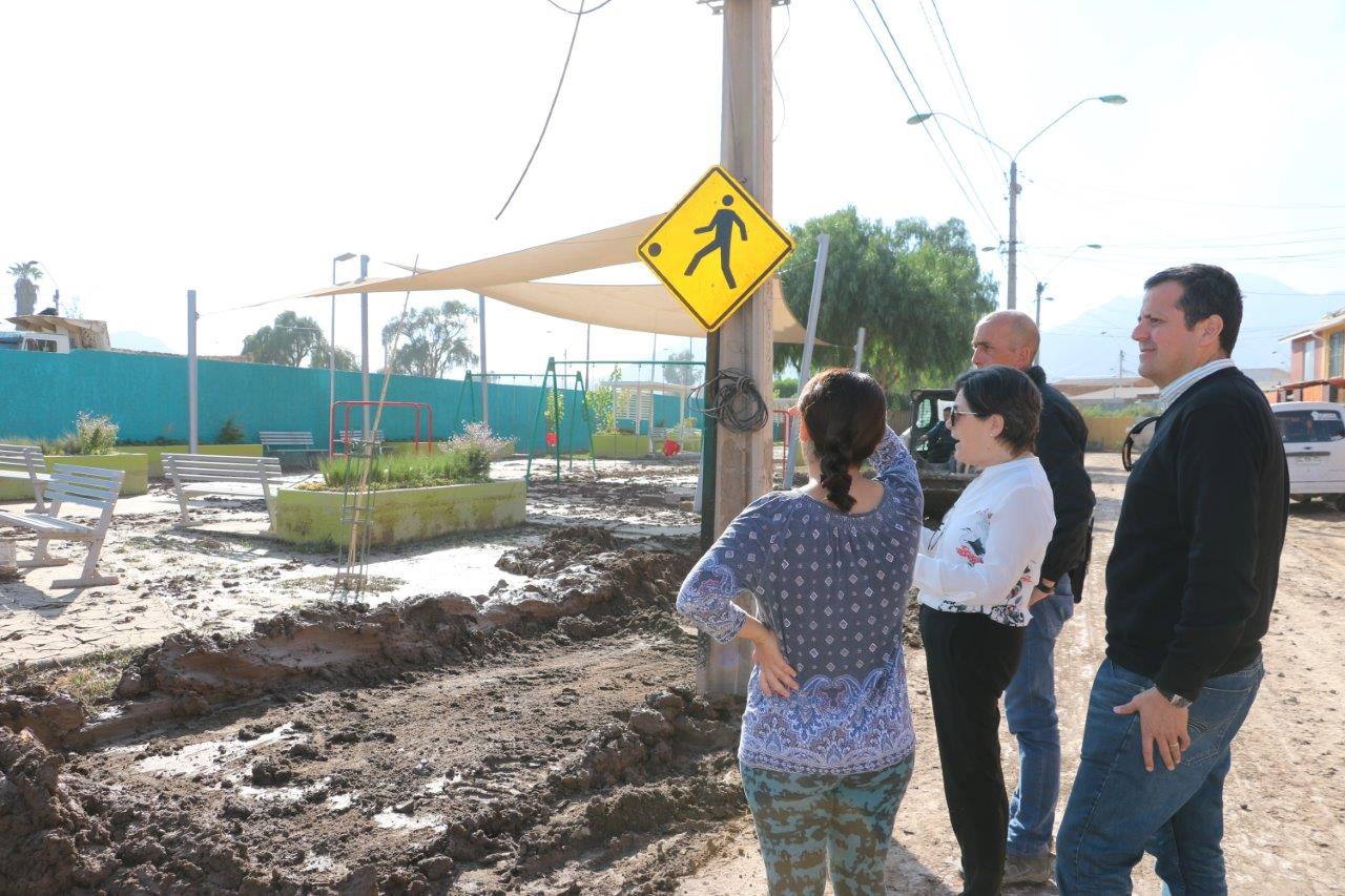 La autoridad informó que en el caso de Chañaral, los daños en el ámbito de la vivienda y del equipamiento urbano están centrados en dos lugares, quebrada Conchuelas y quebrada Cabritos, "y ello implica reponer espacios públicos dañados, conservar pavimentos afectados y reponer un número menor de viviendas en sus propios terrenos y relocalizar a algunas familias que afortunadamente en Chañaral no tenemos dificultad de acogerlas en un proyecto que hoy se está construyendo, llamado Oasis de Atacama, obra cuyos terrenos mostraron perfecto funcionamiento".