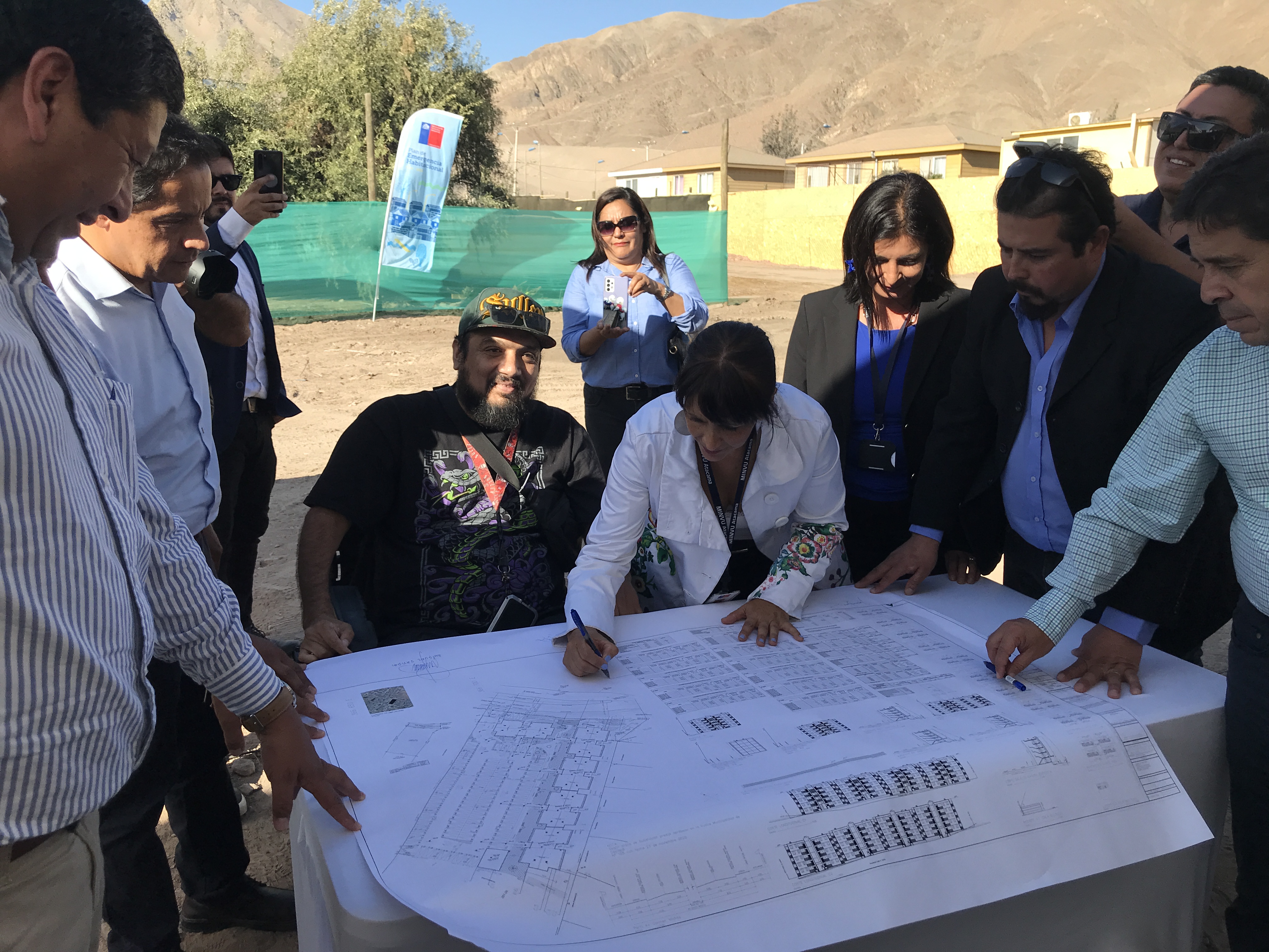 Gobernador Regional, Seremi Minvu, Director Serviu Atacama, 62 familias beneficiarias del Programa Asentamientos Precarios y 38 del "Comité de Vivienda Lautaro Norte", depositaron los planos del proyecto, en el marco del Plan de Emergencia Habitacional en Atacama.