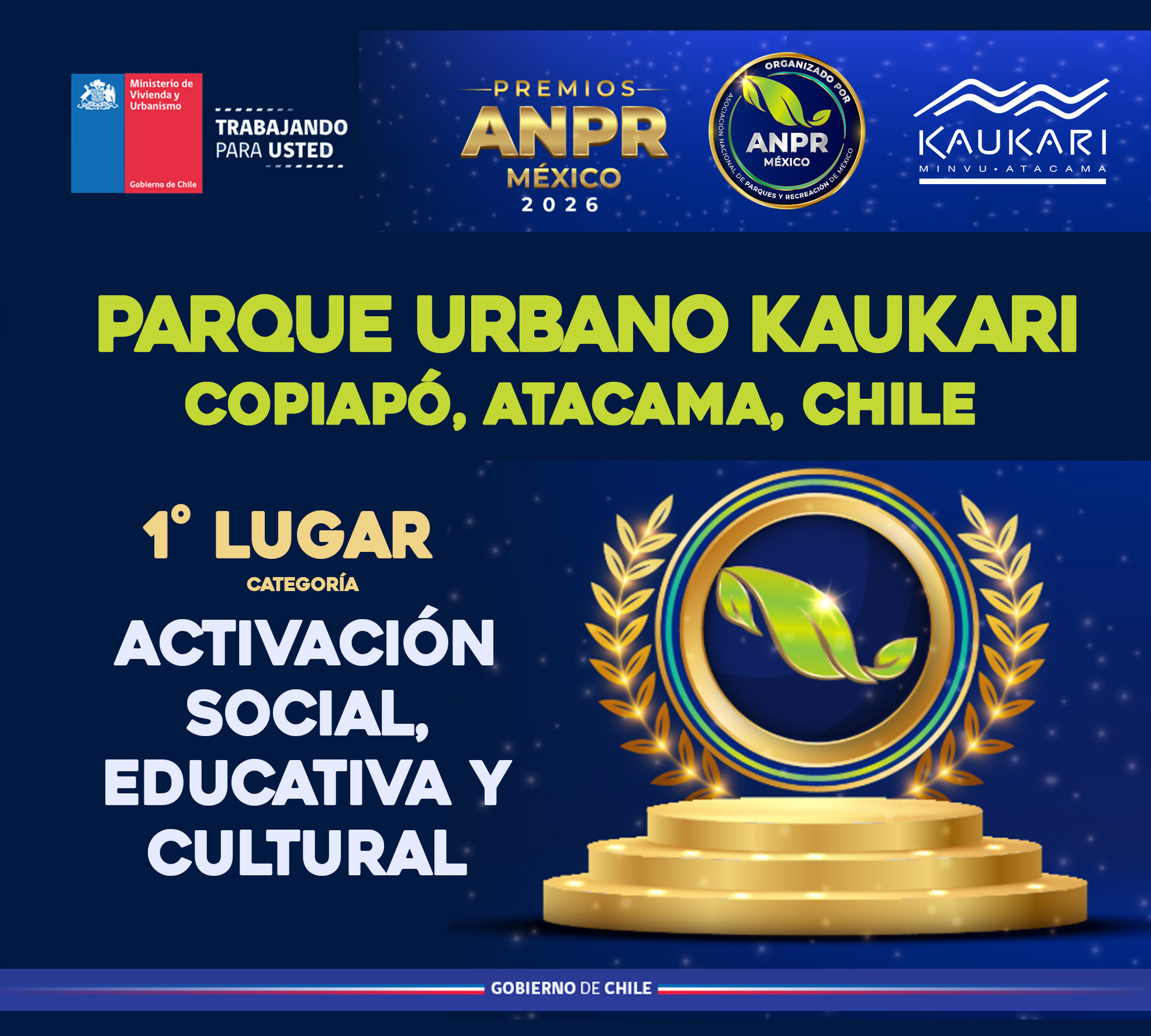 En este contexto es que el parque urbano Kaukari, gestionado y financiado por el Ministerio de Vivienda y Urbanismo y administrado por Serviu Atacama, ganó el primer lugar en los premios ANPR 2026, específicamente en la categoría Activación Social, Educativa y Cultural.